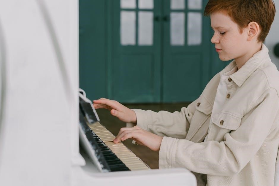 These resources likely cover a range of musical styles and techniques, catering to diverse student needs. The PDF format ensures compatibility across various devices, making learning convenient and accessible for all.